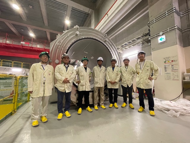 2025年10月8日、当研究室が参加しているCOMET実験において、重要なパートの一つである検出器用超伝導電磁石がJ-PARCに搬入されました。今後インストール作業や磁場分布測定等が行われる予定です。当研究室からは高見君、永井特任助教、青木教授が作業に大きく貢献しています。