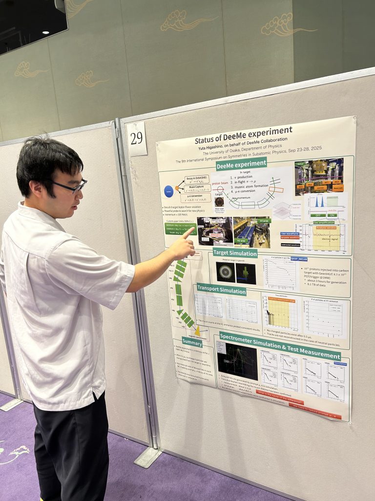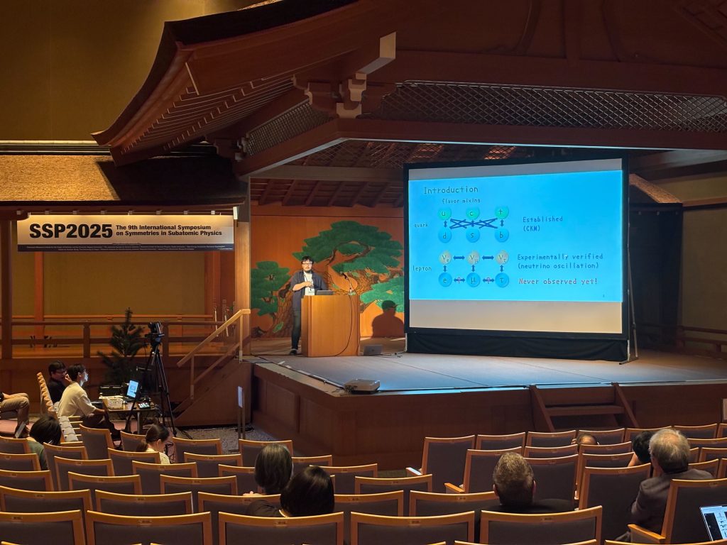 2025年9月23日から28日に奈良にて開催された国際会議The 9th International Symposium on Symmetries in Subatomic Physics(SSP2025)に当研究室から東野君、上野准教授、青木教授が参加し、東野君はポスター発表、上野准教授は招待講演を行いました。